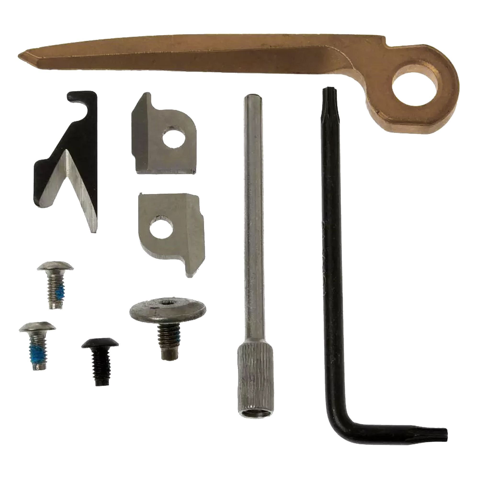 The user-friendly accessory kit contains all interchangeable components of the MUT. It includes: Carbon scraper, weapon disassembly mandrel, ripper blade insert, wire cutter inserts made of 154CM stainless steel, Torx screwdriver no. 8 made of 154CM stainless steel, 4 screws. NOTE: In the black version, the weapon cutting mandrel and the screws are black. NOTE: All parts of this accessory kit can also be used for the MUT EOD. The weapon dismantling mandrel is attached to the holder for the C4 mandrel. Although it does not sit completely flush there, it does not stick out so that it cannot get stuck.