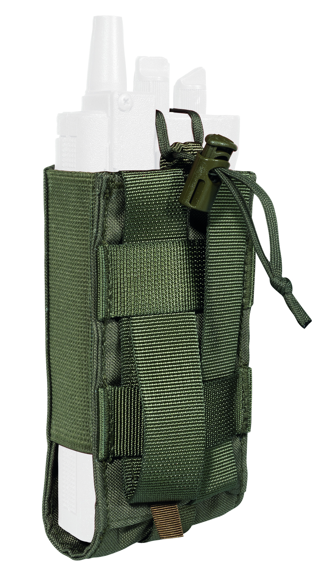 The Lindnerhof radio equipment bag PA132 is a universal holster for small radios. The compression of the two side elastic straps and the push-in buckle closure keeps the inserted radio safely stowed in the bag. Two flexible PALS straps on the back provide the ability to attach to any 25mm webbing based modular surface.