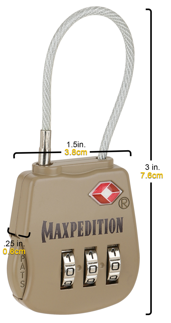 The Maxpedition Tactical Luggage Lock is a 3-digit combination lock with freely selectable combination