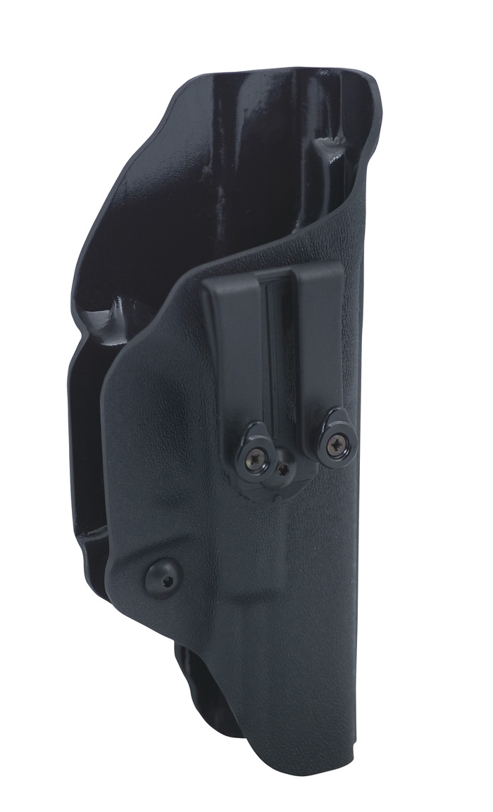 The Radar Inner Holster Ready-Fit is a polyform concealed carry holster ideal for concealed carry in pants or under a shirt thanks to a special attachment system. It has a draw resistance, the Drop Retention Safety Device, a hemispherical protrusion that acts on the trigger guard. The draw resistance is adjusted by means of a screw. The draw angle can be individually adjusted to fit the carrier. It has a preformed front sight guide to prevent hooking during drawing. The side of the holster in contact with the body is shaped to facilitate holstering and protect clothing. Despite its sturdy construction, the holster sits comfortably on the body even when worn for extended periods of time