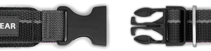 The Ruff Wear® Roamer™ dog leash is made of durable Wavelength™ nylon webbing with an elastic core and special Talon Clip™ closure. The Talon Clip™ made of all-metal impresses with its closure security, and it is easy to open and close again. It opens - unlike a normal carabiner - not at the side, but directly in the middle. The adjustable, padded handle ensures wearing comfort around the wrist and hip. The short hold handle provides close guiding and therefore additional control of your dog.