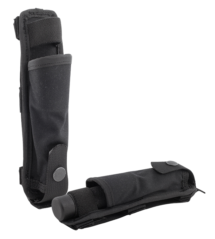 The Telescopic Baton Holder by SnigelDesign is a modular telescopic baton holster which can be attached vertically or horizontally to a duty belt or MOLLE compatible equipment vest.