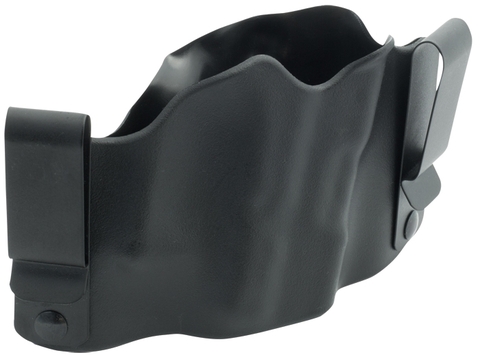 The Stealth Operator™ Multi-Fit Compact IWB is a lightweight, low-profile and sleek holster designed to fit most popular pistols. The IWB (Inside Waist Band) holster tucks into the waistband and is held in place at the waistband by two metal clips. Each Compact Holster features a unique Frame-Lock™ technology that ensures positive draw resistance from your firearm. This means that your firearm will fit tightly and securely in the holster. The holster is constructed of a super-durable injection-molded nylon shell and rust-resistant black oxide hardware.