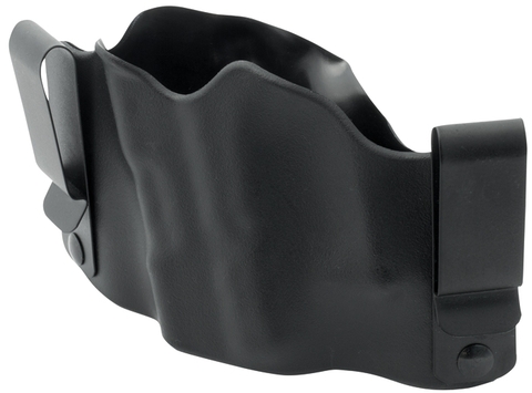 The Stealth Operator™ Multi-Fit Compact IWB is a lightweight, low-profile and sleek holster designed to fit most popular pistols. The IWB (Inside Waist Band) holster tucks into the waistband and is held in place at the waistband by two metal clips. Each Compact Holster features a unique Frame-Lock™ technology that ensures positive draw resistance from your firearm. This means that your firearm will fit tightly and securely in the holster. The holster is constructed of a super-durable injection-molded nylon shell and rust-resistant black oxide hardware.
