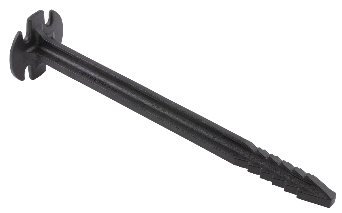 The SwissPiranha BF150 tent peg is made from 100% recycled plastic and is the more sustainable alternative to the RT150. With an overall length of 15 cm and a weight of 15 g, it is a reliable and versatile peg for medium-sized tents, larger tarps, awnings and pavilions.