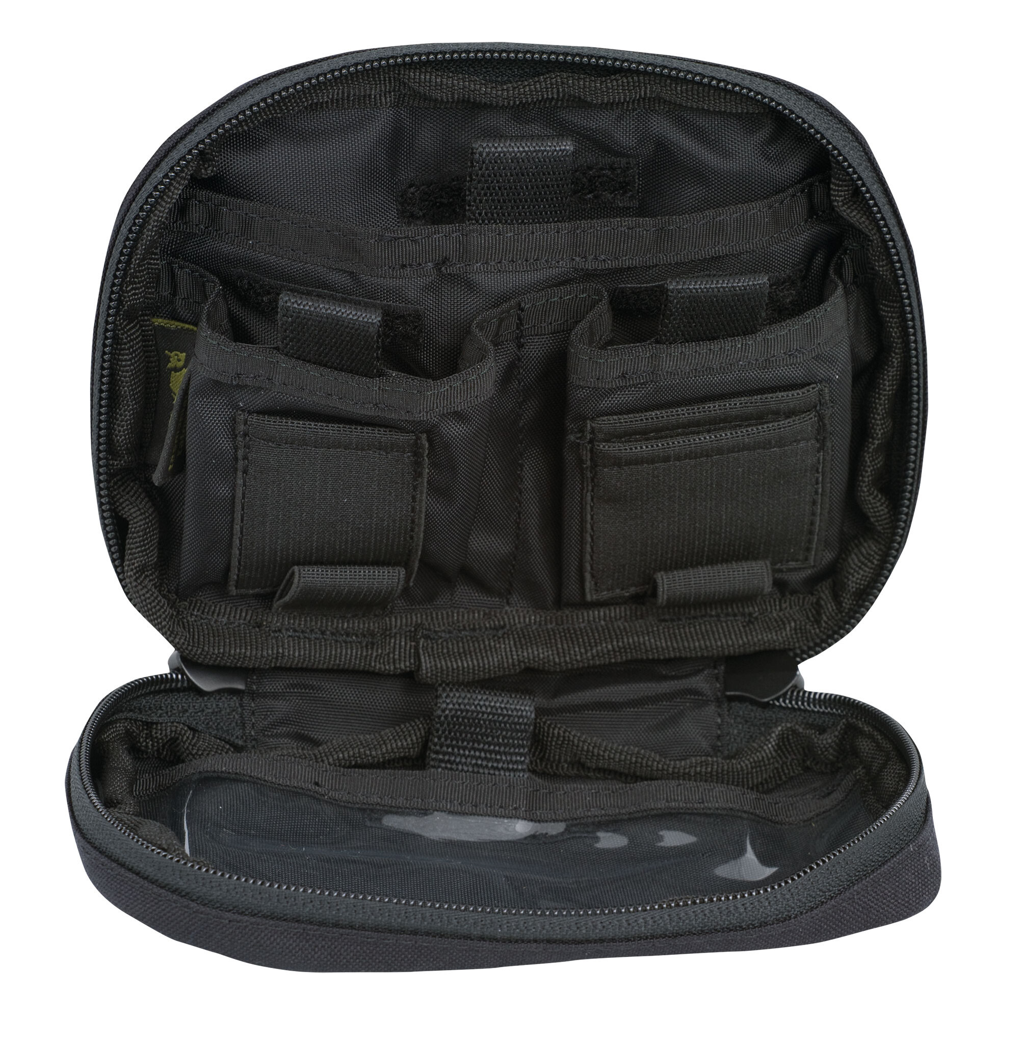 With Velcro closable transparent document compartment.