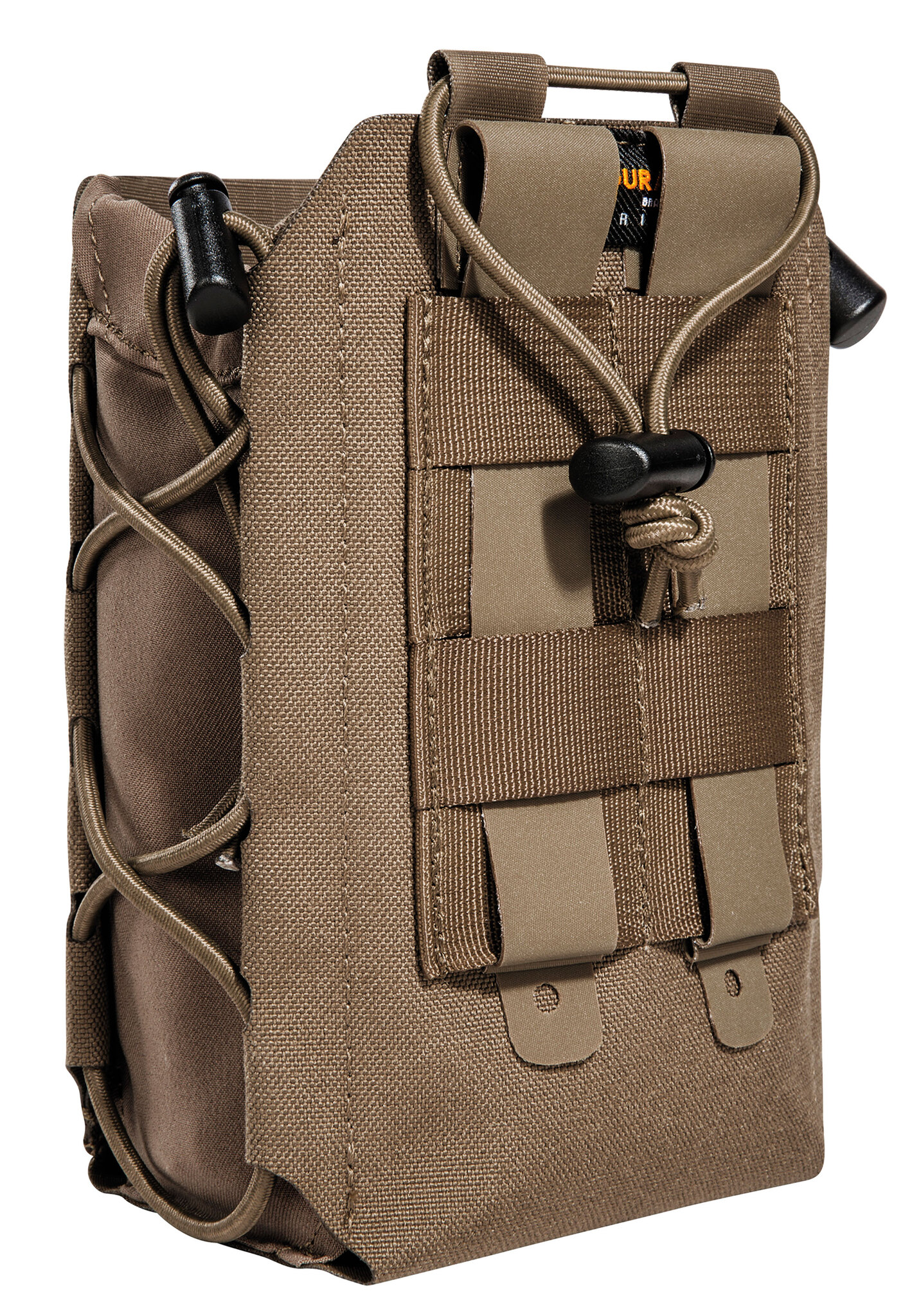 The TT Multipurpose Side Pouch is ideal for a 1 liter Nalgene bottle or for carrying a camera tripod. It can be compressed with an elastic band and attaches to backpacks with MOLLE as a side pouch.