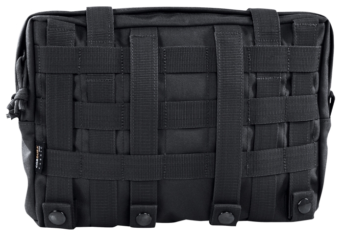 Large modular gear bag with four vertical PALS attachment loops for MOLLE system (25 mm), two compression straps with clip and four horizontal MOLLE loops on the front.