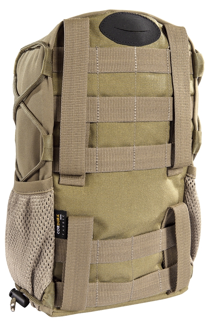 Main compartment with elastic loops, bungee cord with pull stoppers and hydration bladder holder.