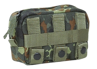 Accessory bag with wide-opening zipper and Velcro strip for name tape on Molle basis with dimensions 10 x 15 x 4 cm and weight 95 g.
