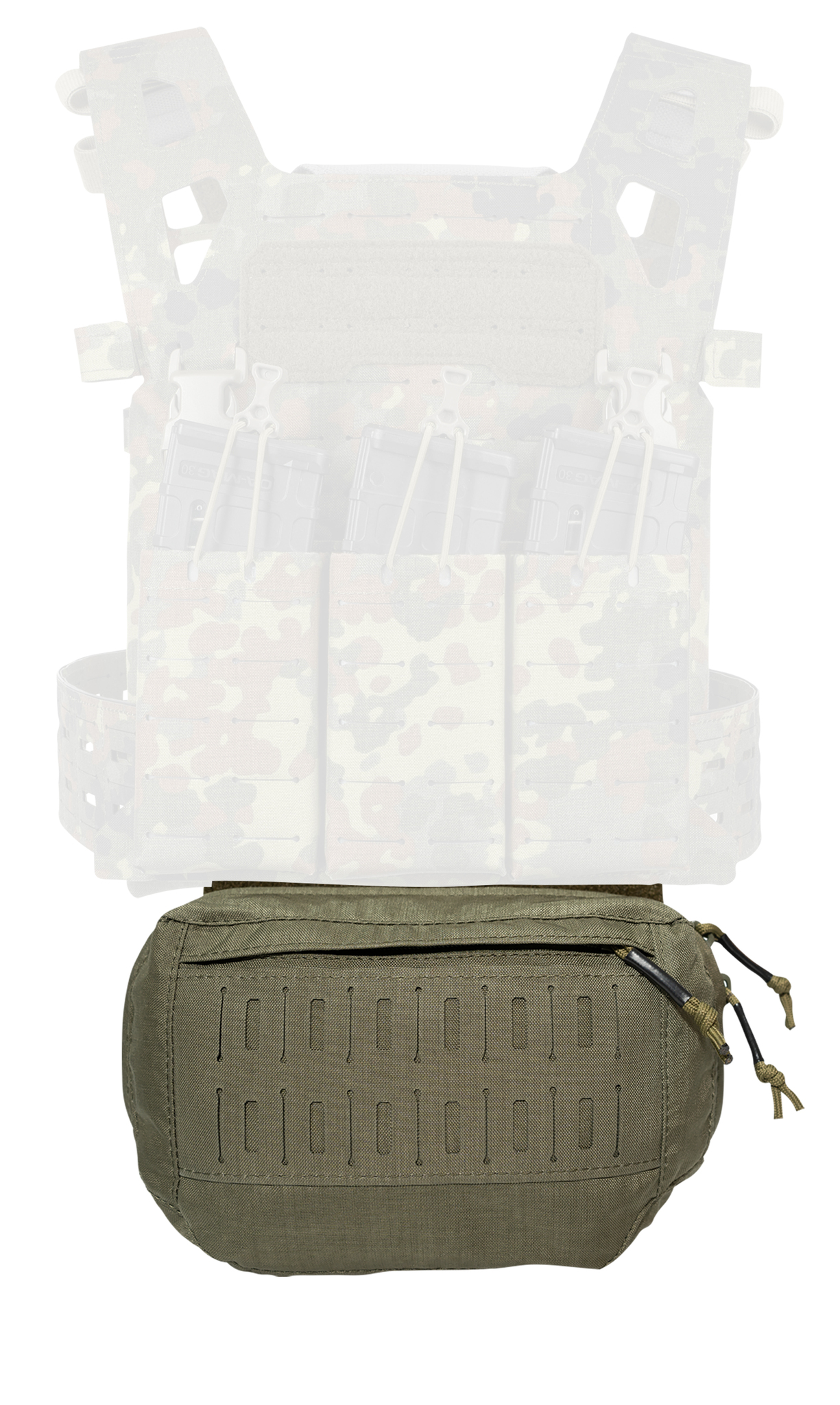The Templars Gear Dangler Pouch GEN2 is designed to be used in conjunction with any plate carrier (Velcro adapter). Three outer zippered pockets and two soft pockets in the main compartment can be used to store important gear. The Dangler Pouch's Velcro pocket in the main compartment (with elastic bands) can be used to attach organizers or an ifak. The Dangler Pouch is designed to hold soft armor inserts to protect the lower abdominal area.