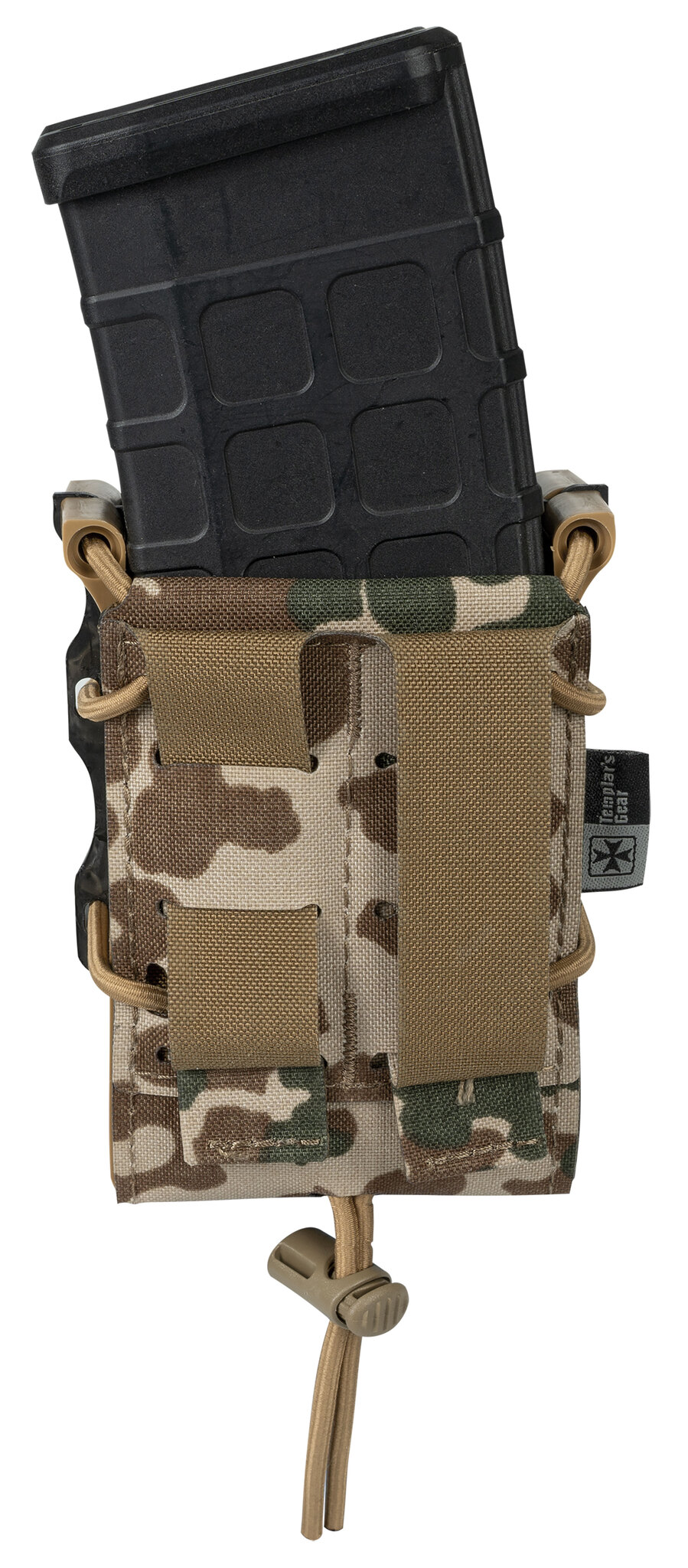 The Templars Gear Rifle DFMR is an open double magazine pouch for direct access and secure tuck away. The magazine pouch offers a firm hold for the magazines through a rubberized inner wall and side bungee cord fixation.