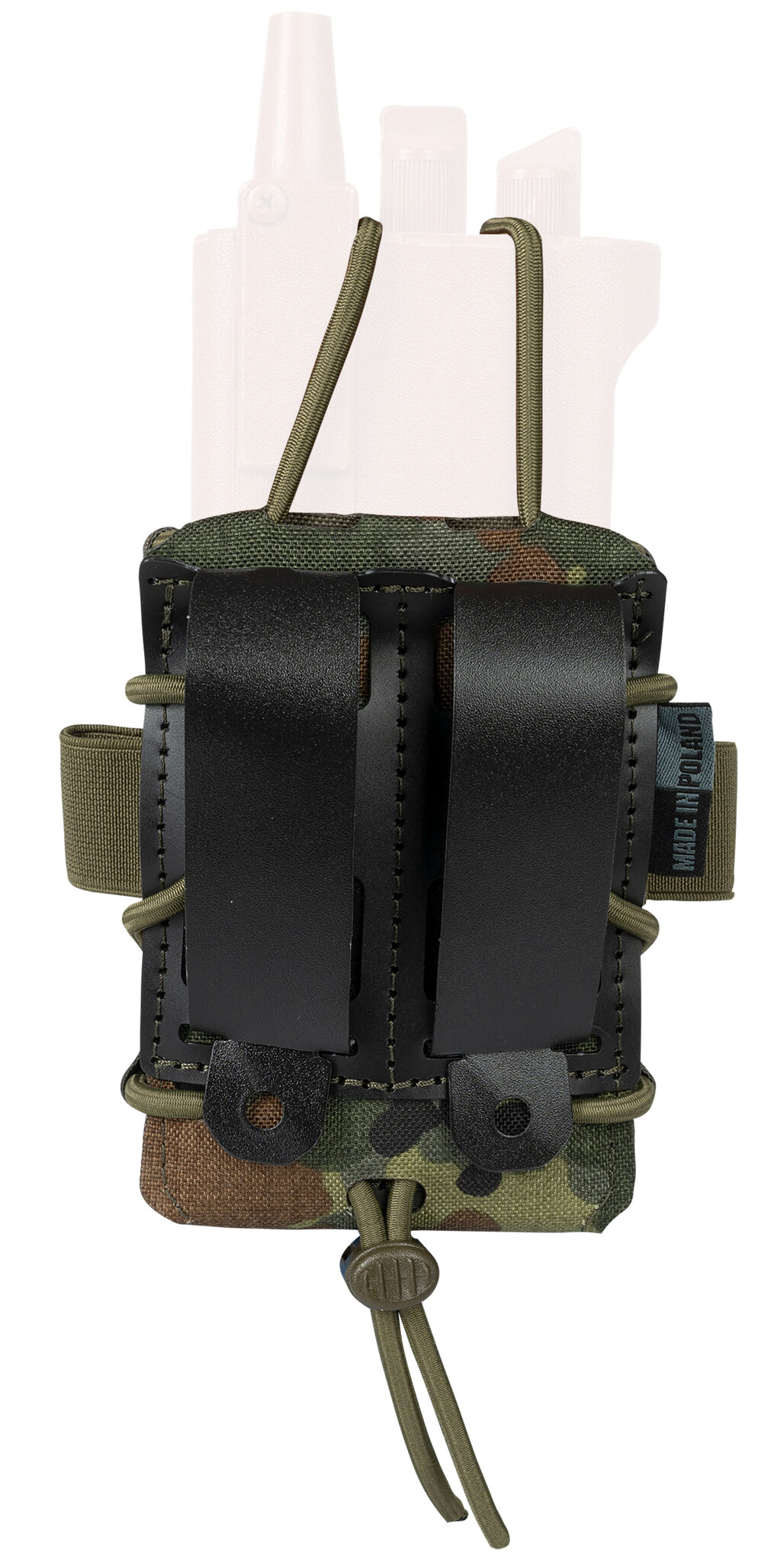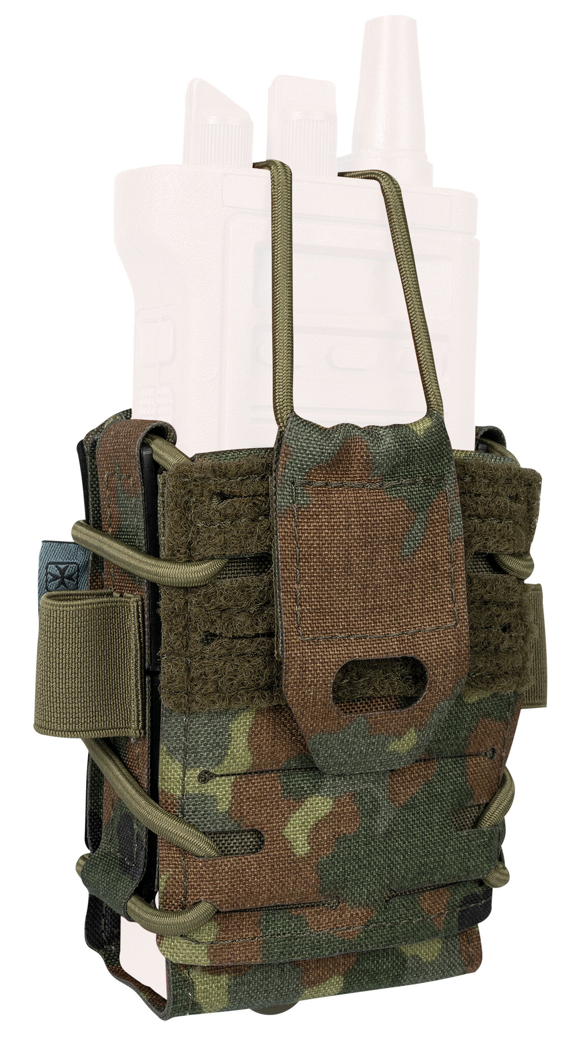 In addition, an elastic loop was installed on each side, which is intended for batteries. The bag can be attached to MOLLE platforms with PALS and requires 2 x 2 fields of MOLLE mounting space. The mounting loops are made of flexible polymer for lasting durability.