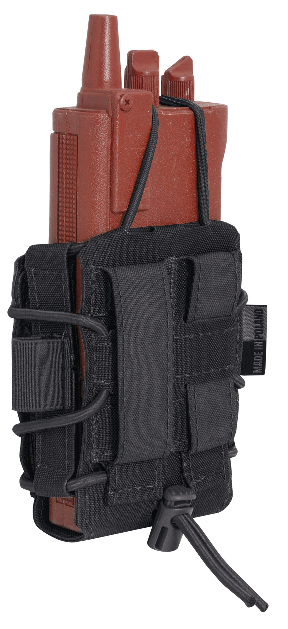 The Templars Gear Universal Radio Pouch is suitable for radios of all types. Size adjustment via length adjustable Velcro quick release and width adjustment/draw resistance via bungee cord. Holster is made of rugged 500D Cordura® laminate with PALS attachment loops on the back.