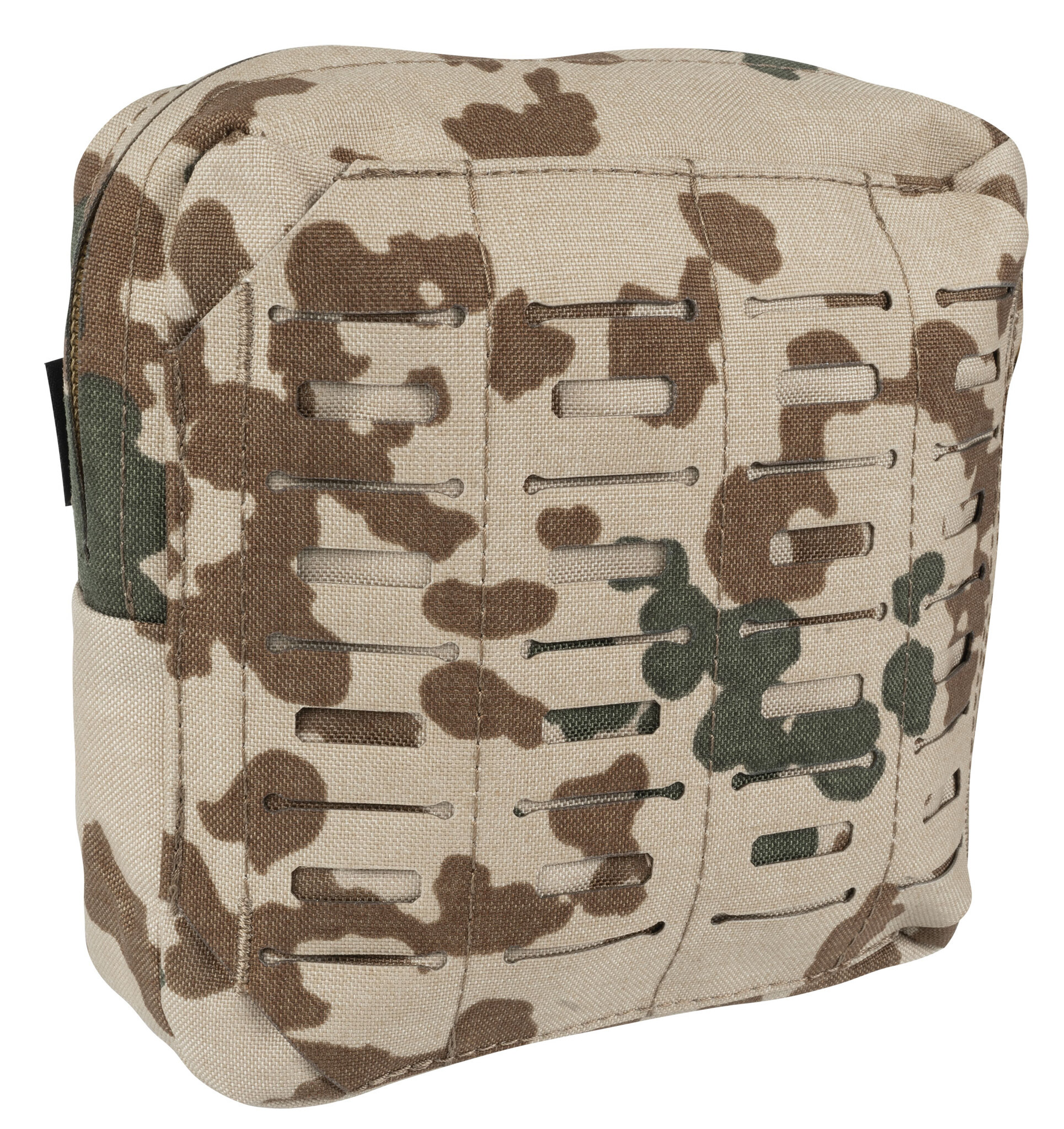 Templars Gear offers Utility Pouches, also called GP Pouch, Universal Pouch, Multi-Purpose Pouch, in various sizes. The Utility Pouch Medium offers a popular shape and size that can be used on a belt, plate carrier or chest rig. The pouch closes with two paracord zippers and offers approximately 8 cm wide Velcro on the inside for organization. Furthermore, a drainage eyelet is available. On the front, the Utility Pouch offers 4 x4 rows of lasercut MOLLE. For mounting, the pouch requires 4 x4 rows of MOLLE, with only one tab each on the outside of the pouch itself for threading. In between there is another row of MOLLE to attach flat items - e.g. a knife (approx. 7 cm space between the lasercut loops).
