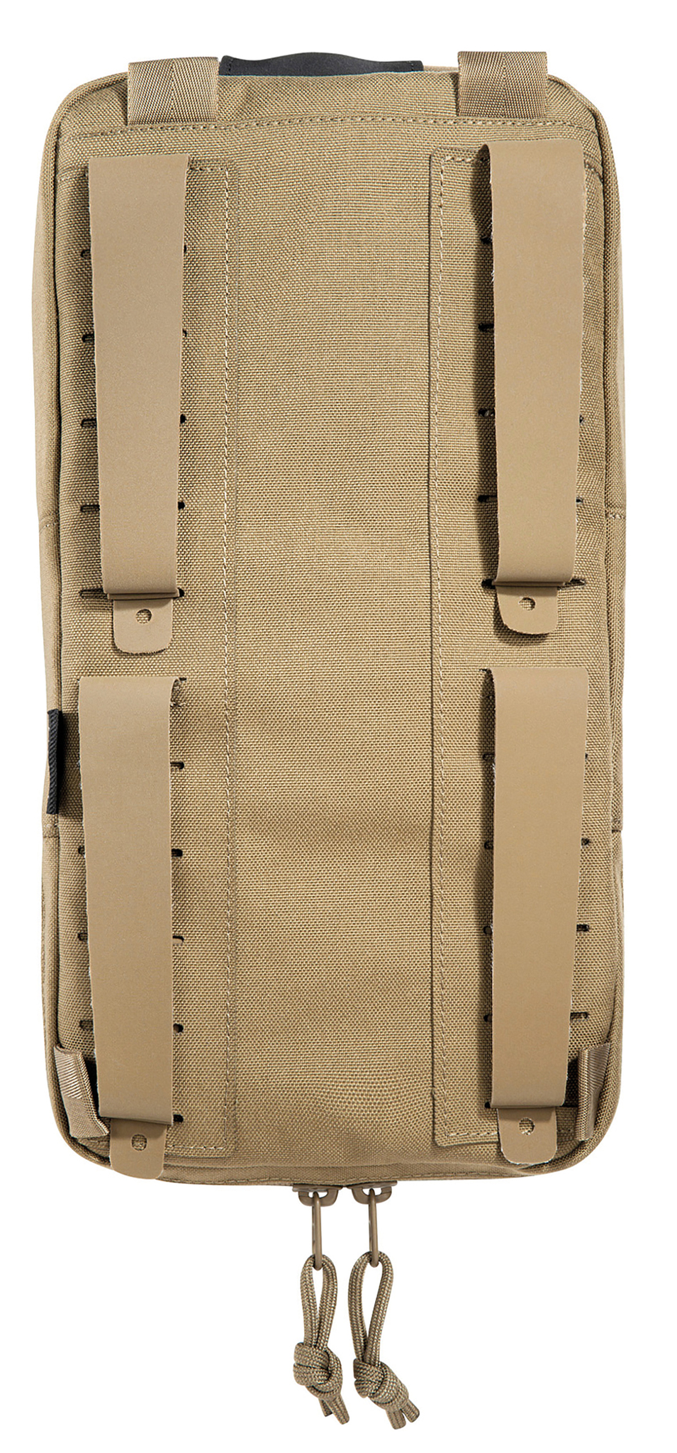 The TT Bladder Pouch Extended is a variable volume bag for hydration systems with MOLLE reverse system, designed for a 1 - 1.5 liter hydration bladder. Through a zipper on the bottom, the volume can be increased to fit a 3 liter hydration bladder. The bag is especially suitable for mounting on plate carriers.