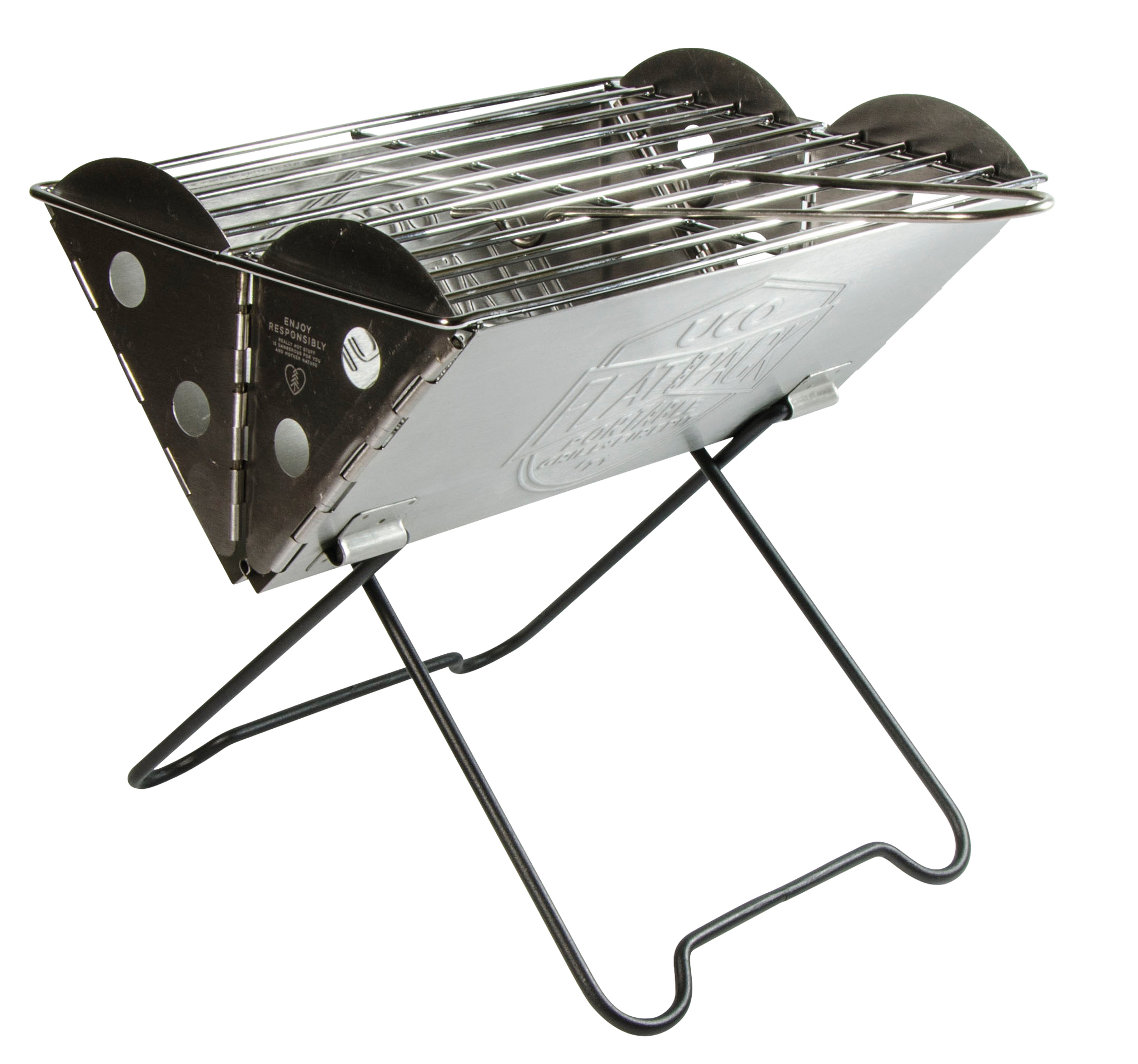 The UCO Grill and Fire Bowl is a sturdy and quick to assemble and disassemble grill made of stainless steel, packed in a practical carrying bag