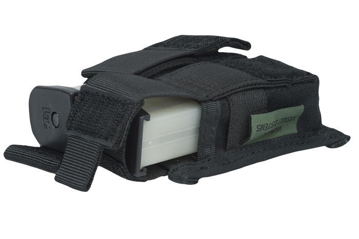 The Warrior Assault System Double 9mm Direct Action Mag Pouch can be used with or without the magazine safety,