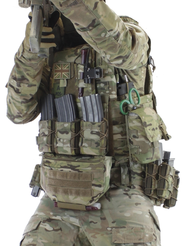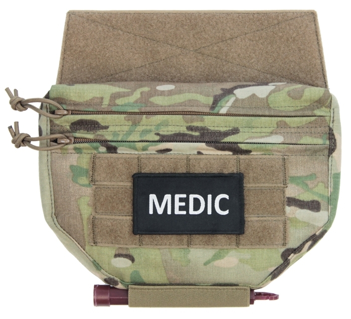 The Drop Down Utility Pouch attaches with Velcro to the front of Warrior vests (fits DCS, Raptor and Pathfinder Chest Rigs)
