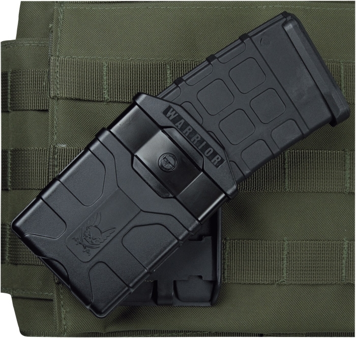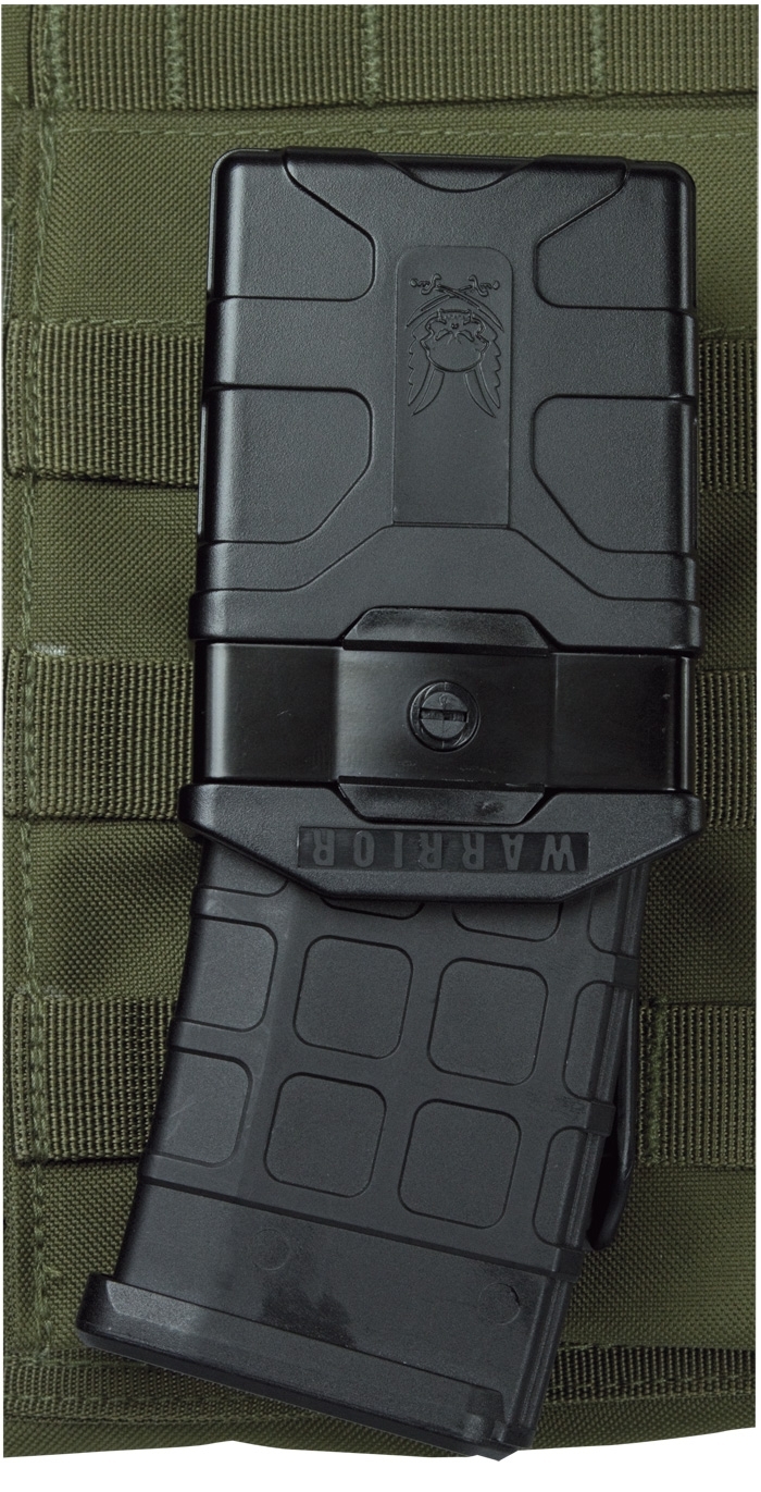 Warrior polymer magazine pouch with rotating Molle attachment for 5.56mm caliber M4/AR15 magazines.