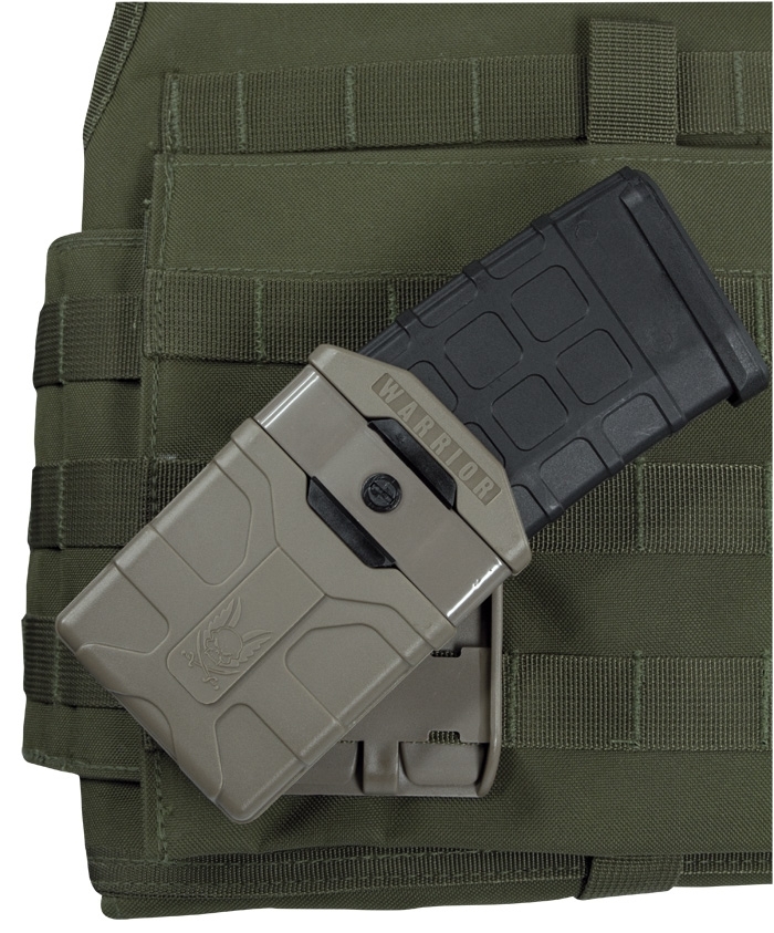 Warrior polymer magazine pouch with rotating Molle attachment for 5.56mm caliber M4/AR15 magazines.
