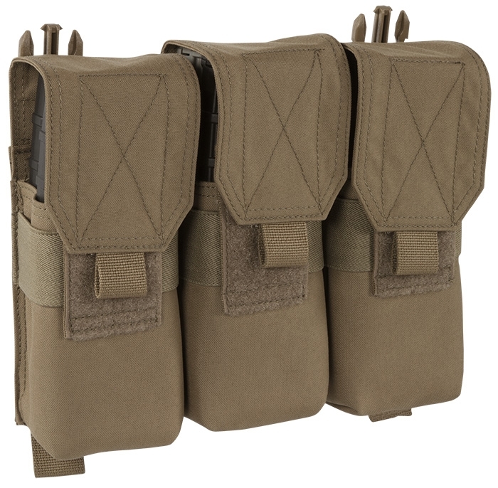 The Triple Covered M4 Mag Pouch has a velcro back and can be attached to the front of the Recon Plate Carrier. The 3 magazine pouch is suitable for 6 pieces of 5.56 x 45mm M4 magazines (Including PMAGs, SA80, HK416, ...).
