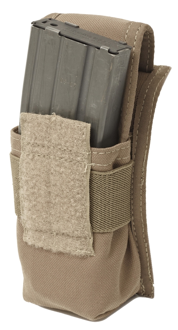 The Warrior Assault System Single NSR 5.56mm 90R Mag can hold 3 magazines or a smoke pot,