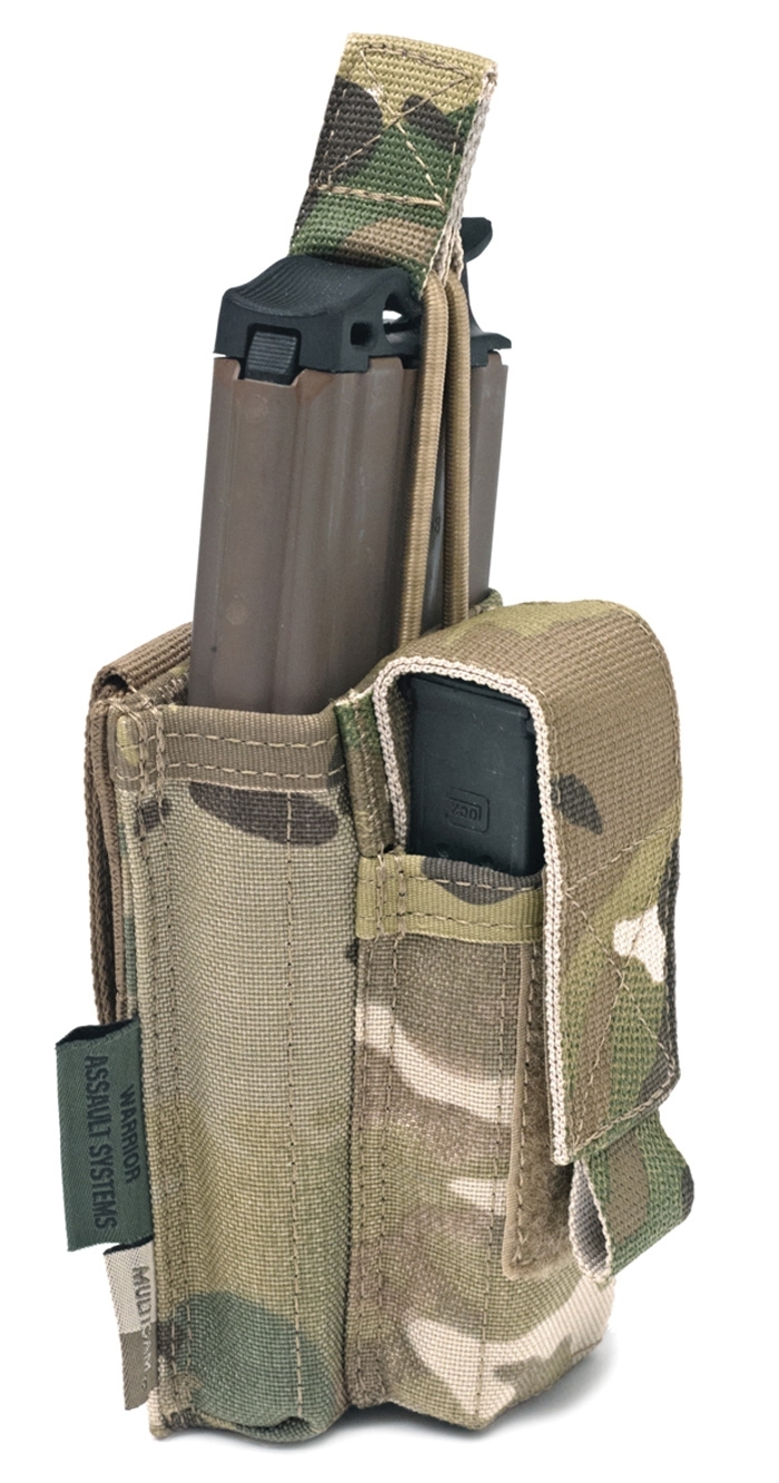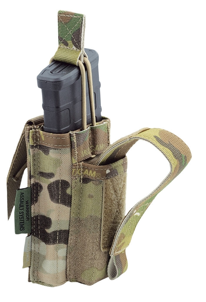 The Warrior Assault System Single 5.56mm & 9mm Open Mag Pouch designed for quick magazine change,