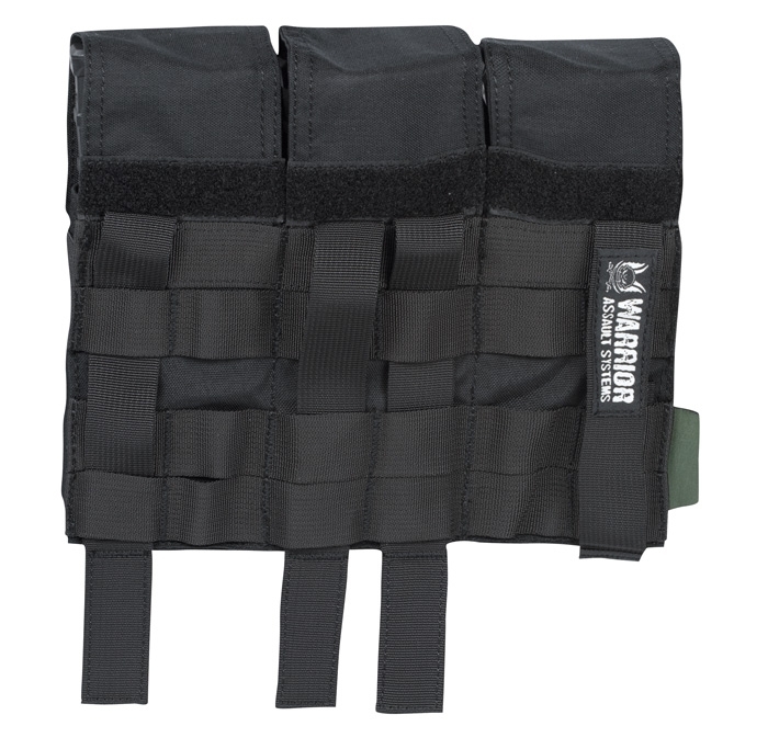 The Warrior Assault System Triple M4 5.56mm Mag can hold 6 magazines, the magazine covers can be velcroed to the back of the pouch for quick magazine changes.