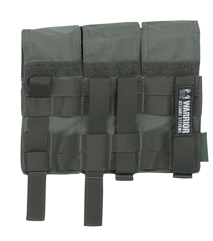 The Warrior Assault System Triple M4 5.56mm Mag can hold 6 magazines, the magazine covers can be velcroed to the back of the pouch for quick magazine changes.