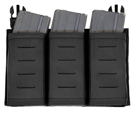 Our triple-snap mag panel is designed to accept 3 x 5.56 magazines held in place by thermoplastic sleeves, allowing a strong hold with the advantage of a one-pull magazine pull for fast dynamic reloading.