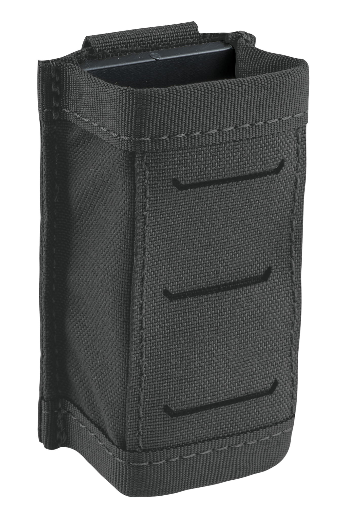 The Warrior Laser Cut Single Snap Mag Pouch 9 mm Short is designed for 1 x 9 mm magazine. The magazine pouch consists of a 500D Cordura® nylon laminate outer shell and a thermoplastic magazine retaining clip. The specially molded clip holds the magazine firmly in the magazine pouch and allows for quick and dynamic reloading.