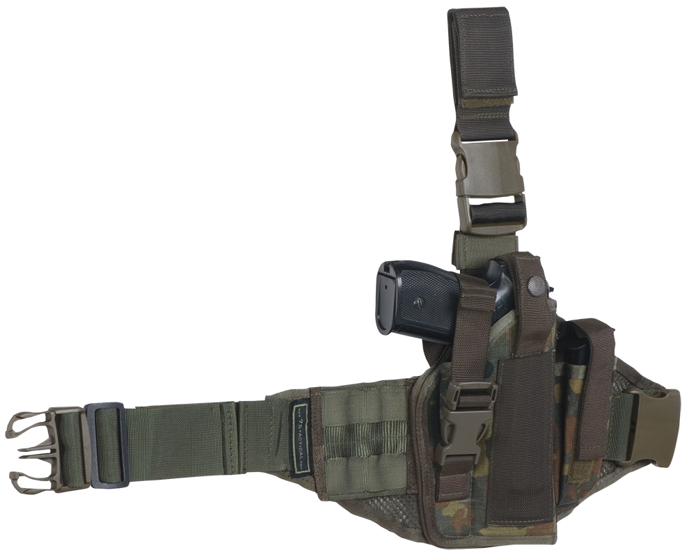 The 75Tactical PX3 is designed as a tactical thigh holster for 9mm duty pistols