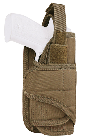 The universal Condor Vertical Holster fits all popular 9mm pistols and can be mounted and carried vertically with the MOLLE/ PALS attachment.