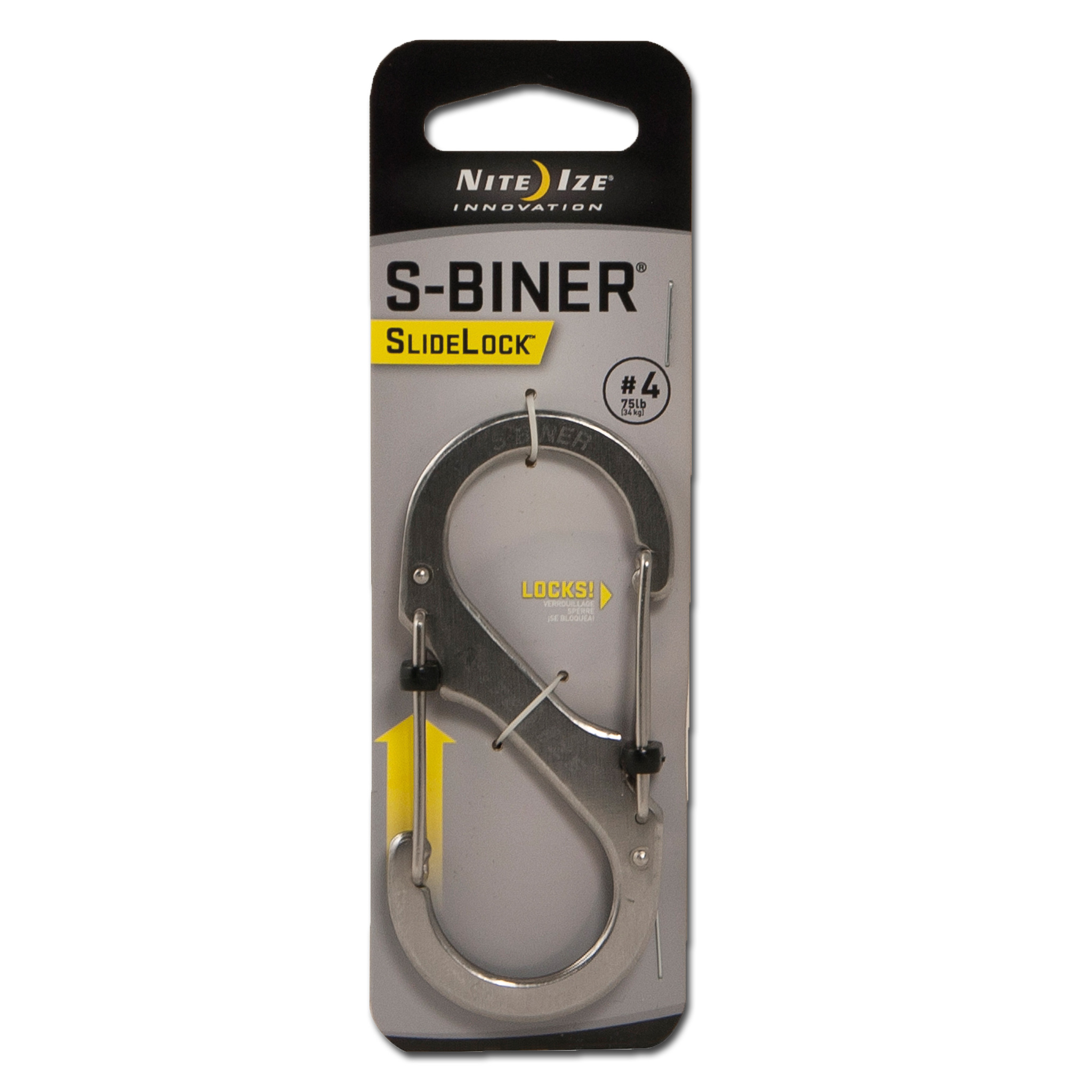 Карабин S-Biner со двойным скользящим замком. С каждой стороны имеется по 2 пластмассовых ползунка, которые предотвращают непреднамеренное открытие.