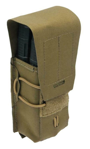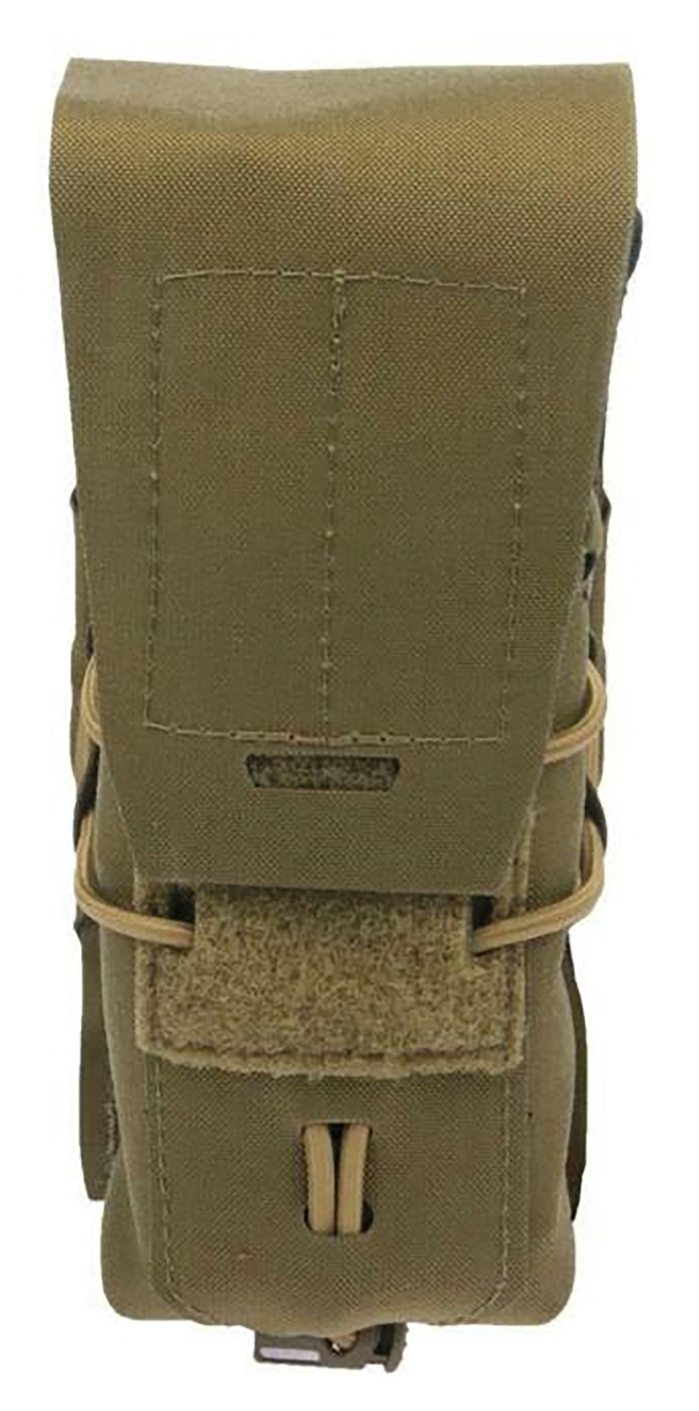 Templars Gear's Double Mag Pouch magazine pouches are extremely low-profile, lightweight and made of rugged 500D Cordura® laminate. Magazines are secured by a closure tab with Velcro and by a half-round bungee cord with cord stopper. The closure tab can be velcroed away so the pouch can also be used open.