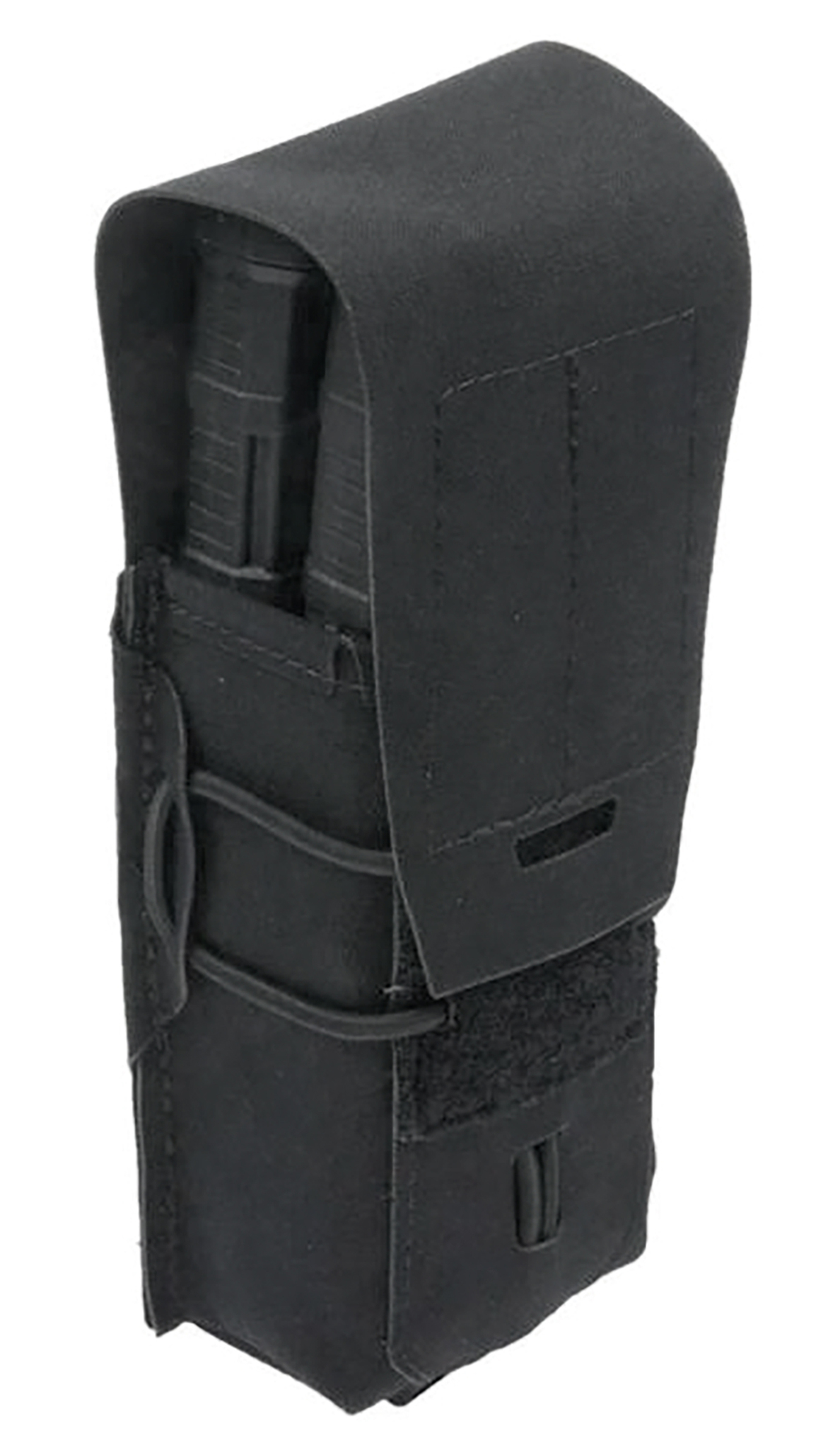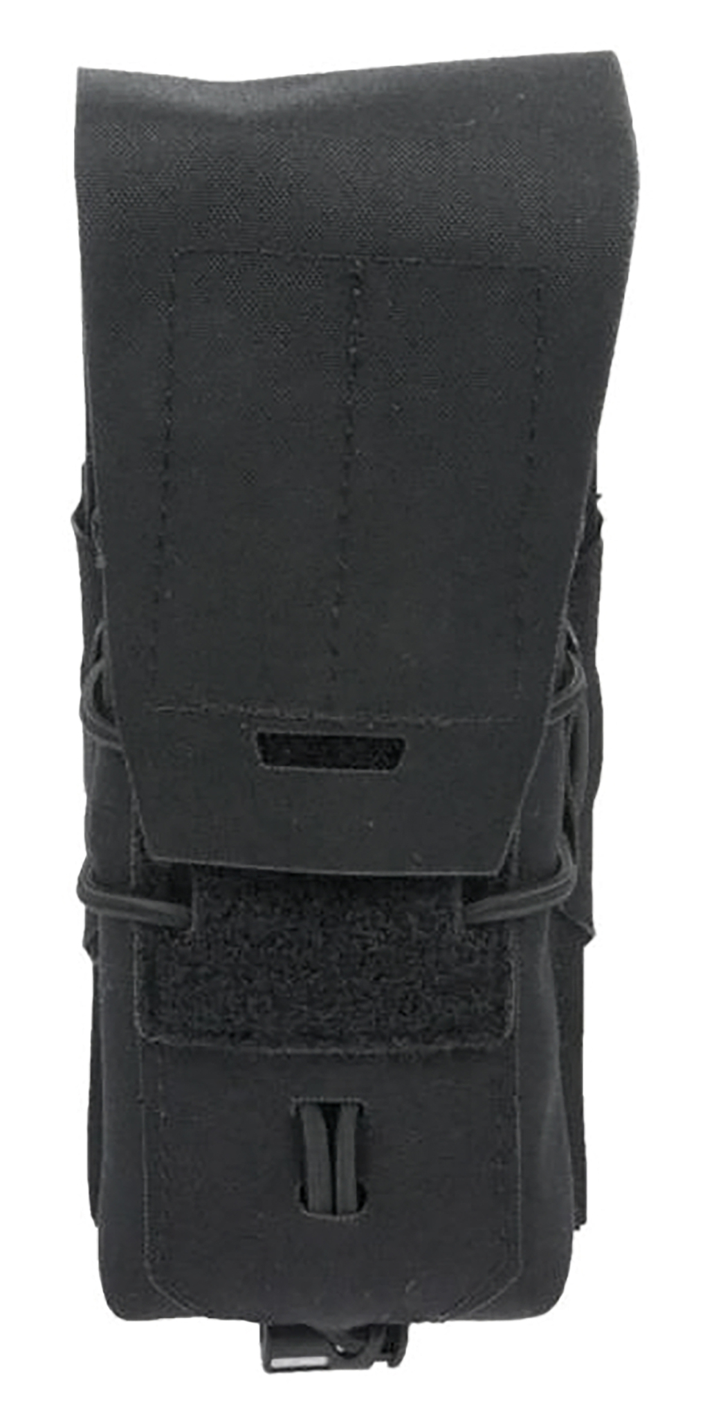Templars Gear's Double Mag Pouch magazine pouches are extremely low-profile, lightweight and made of rugged 500D Cordura® laminate. Magazines are secured by a closure tab with Velcro and by a half-round bungee cord with cord stopper. The closure tab can be velcroed away so the pouch can also be used open.
