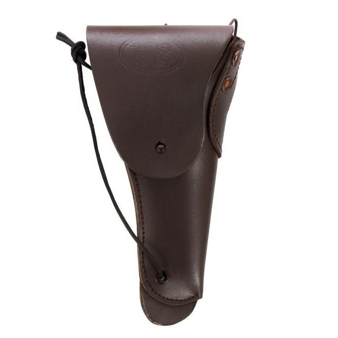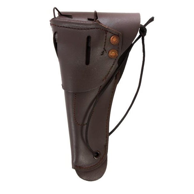 Reproduction of a classic leather holster for a COLT 1911 gun. It can be attached to a belt, in the lower part it has an opening with a leather safety cord.