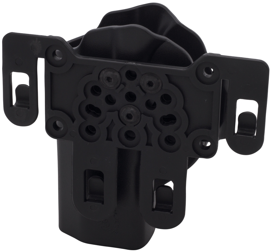 The modular mount allows easy adjustment of the inclination of the attached holster and is compatible with the MOLLE system (25 mm).