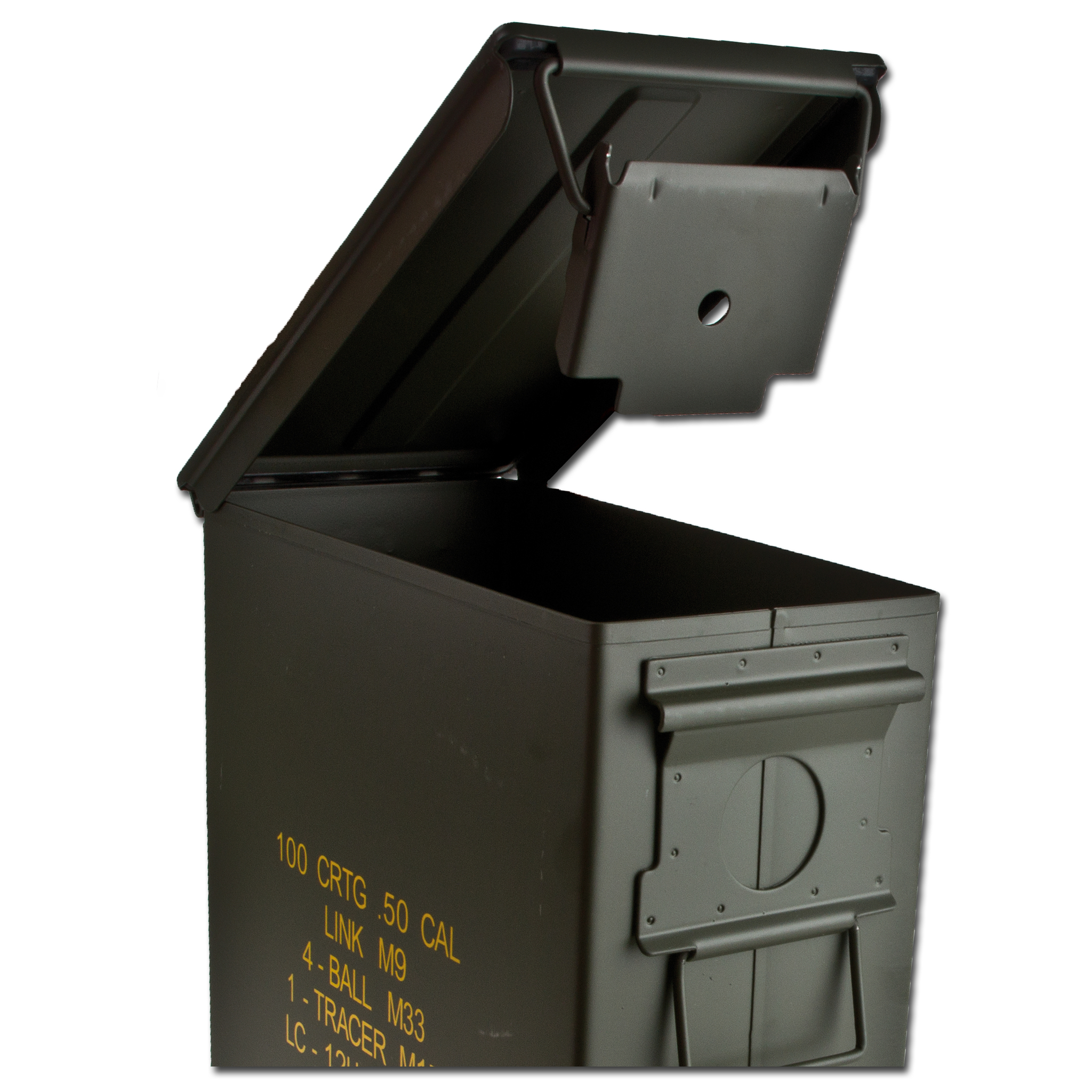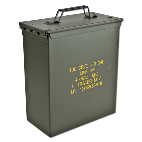 Nachbau der original amerikanischen US Ammo Box. Gefertigt aus stabilem Stahl. Mit praktischem Tragegriff und dem bekannten seitlichen Verschlussmechanismus. Es ergeben sich unzählige Verwendungsmöglichkeiten im Haushalt, Hobby oder Beruf. Nutzbar z.B. als Werkzeugkasten, stilechte Dekoration oder als robuster Vorratsbehälter bei Outdooraktivitäten.