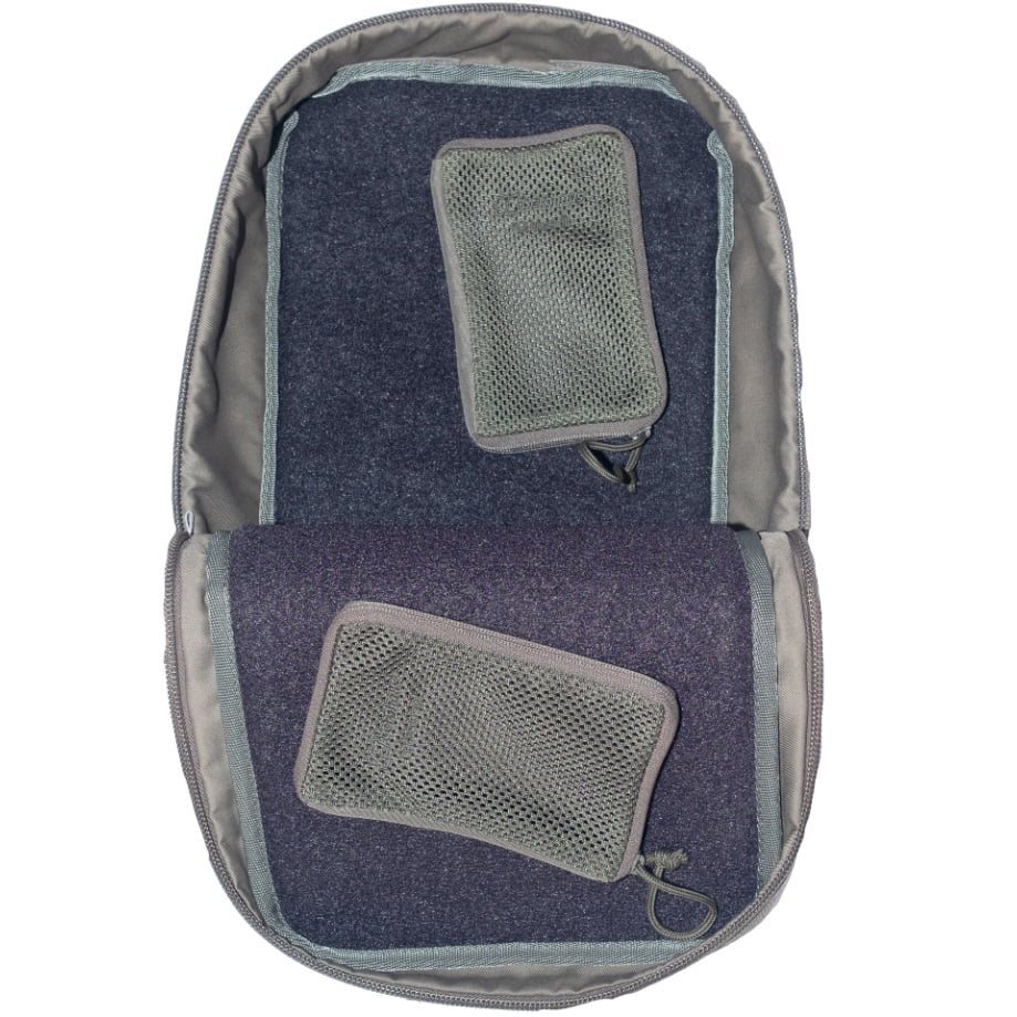 With the cargo pocket, a significant volume can be added to the FLT rucsac. The whole inside is covered with soft VELCRO. Pouches can be sticked on the VELCRO for organising purposes. Fits every FLT rucsac, either at the sides or the front using ACH applications. The Cargo Pocket can be carried individually when attaching the FLT Shoulder Harness.