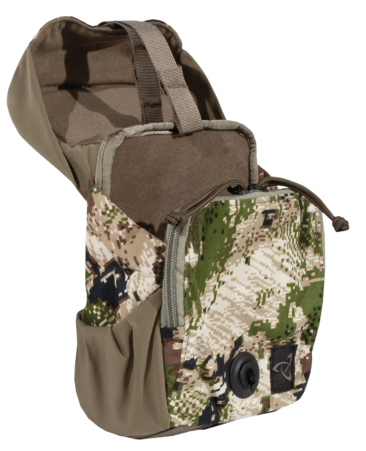 The Mystery Ranch Quick Draw Bino Harness is a convenient binocular storage case with a handy carrying strap and magnetic-DeepL access.