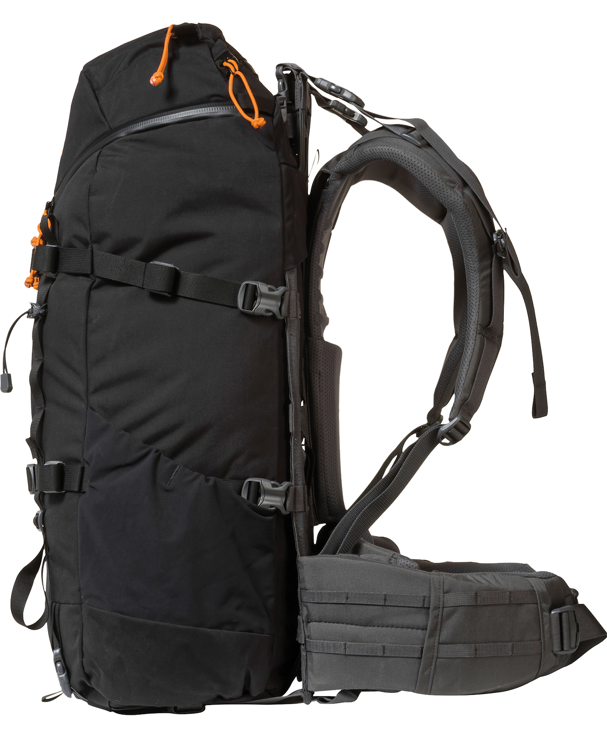 Padded and reinforced hip belt with MOLLE compatible webbing.