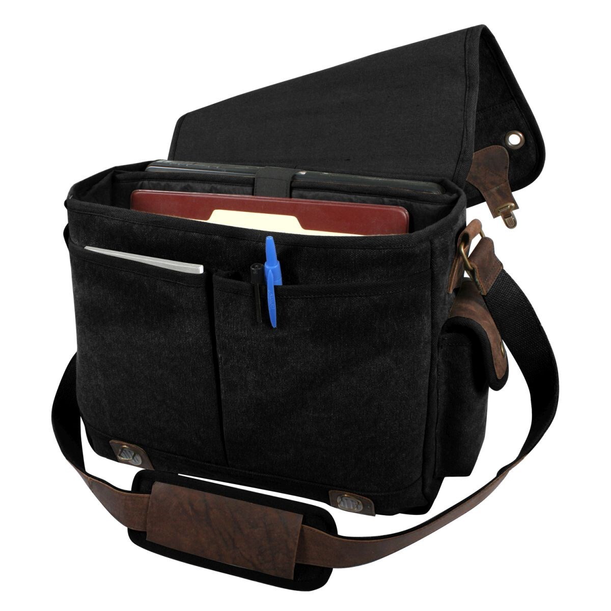 - Canvas Laptop Shoulder Bag Measures 15" X 11" X 5"