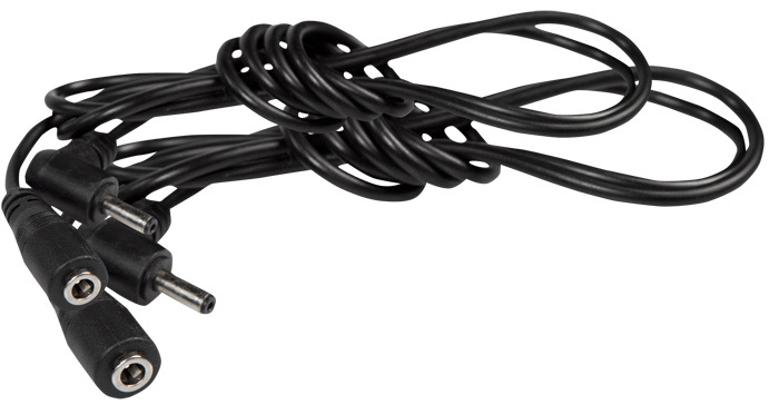 The extension cable has a length of 90 cm. There are 2 cables included in the set. You plug the extension cable to the cable in the sock and the other end to the battery pack, so you can carry the battery for example on the belt or in your pocket.