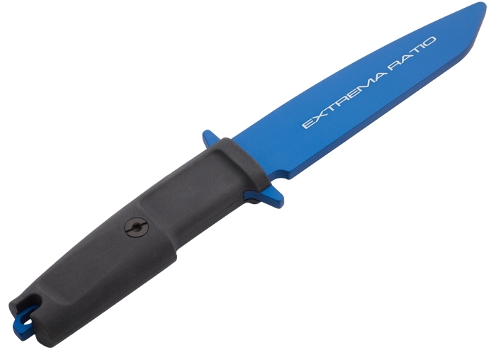 The Extrema Ratio training knives made of blue anodized aluminum.