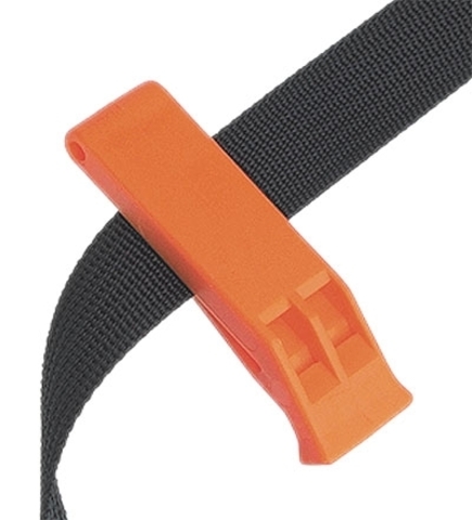 Shrill whistle with clip to attach to the edge of the belt or bag. Small but mighty.