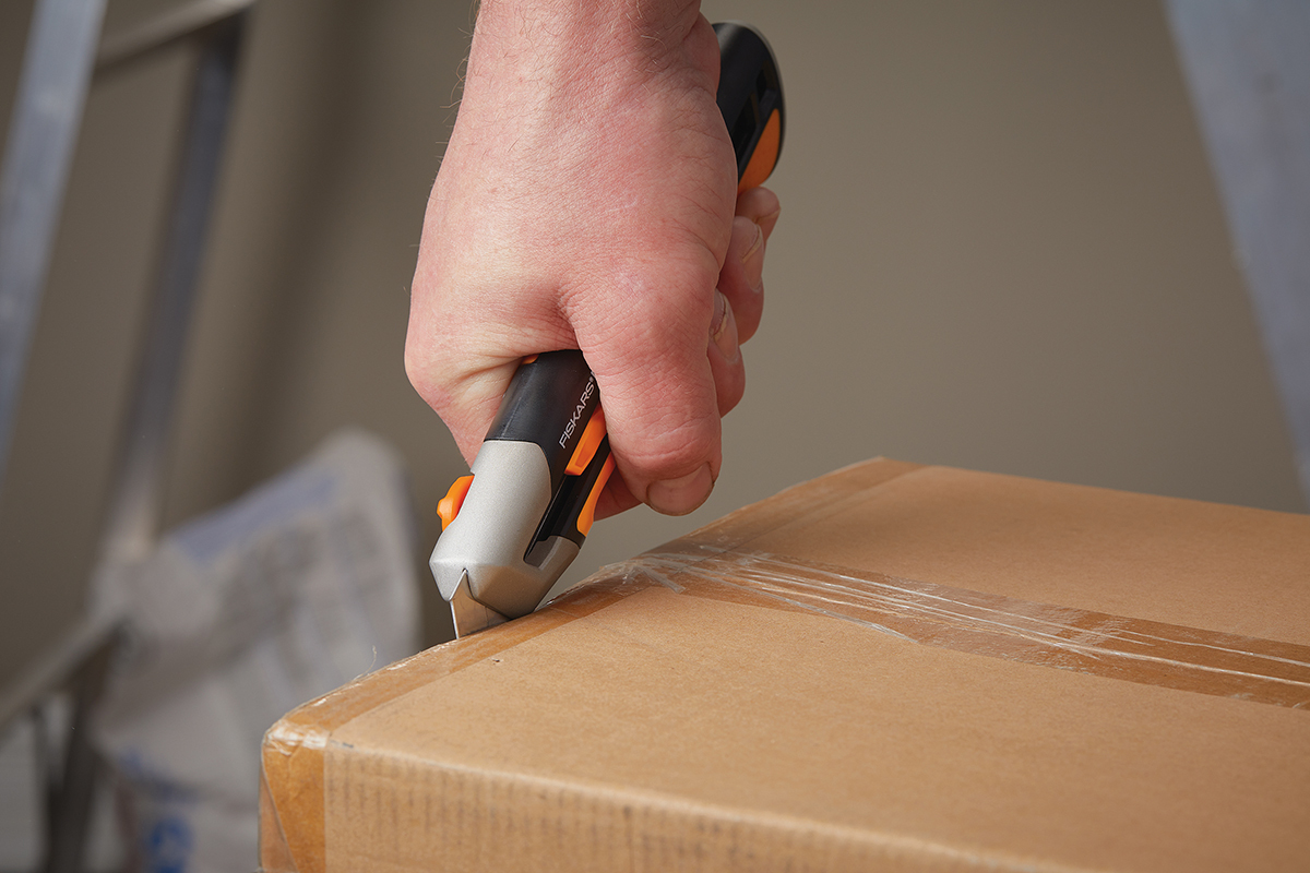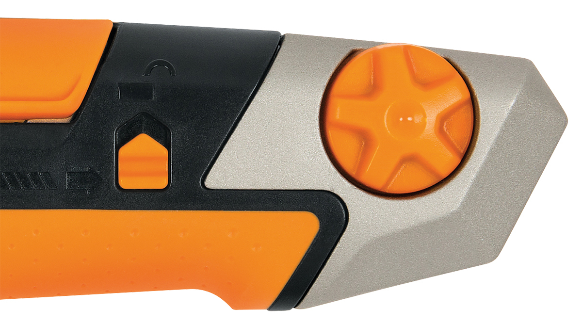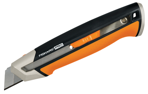 Fiskars CarbonMax snap-off blade universal knife offers convenient front blade change, no loose parts; blade change becomes easier and faster
