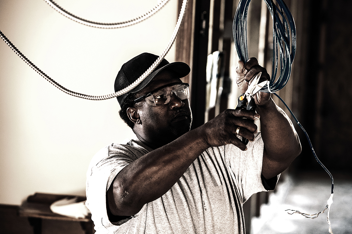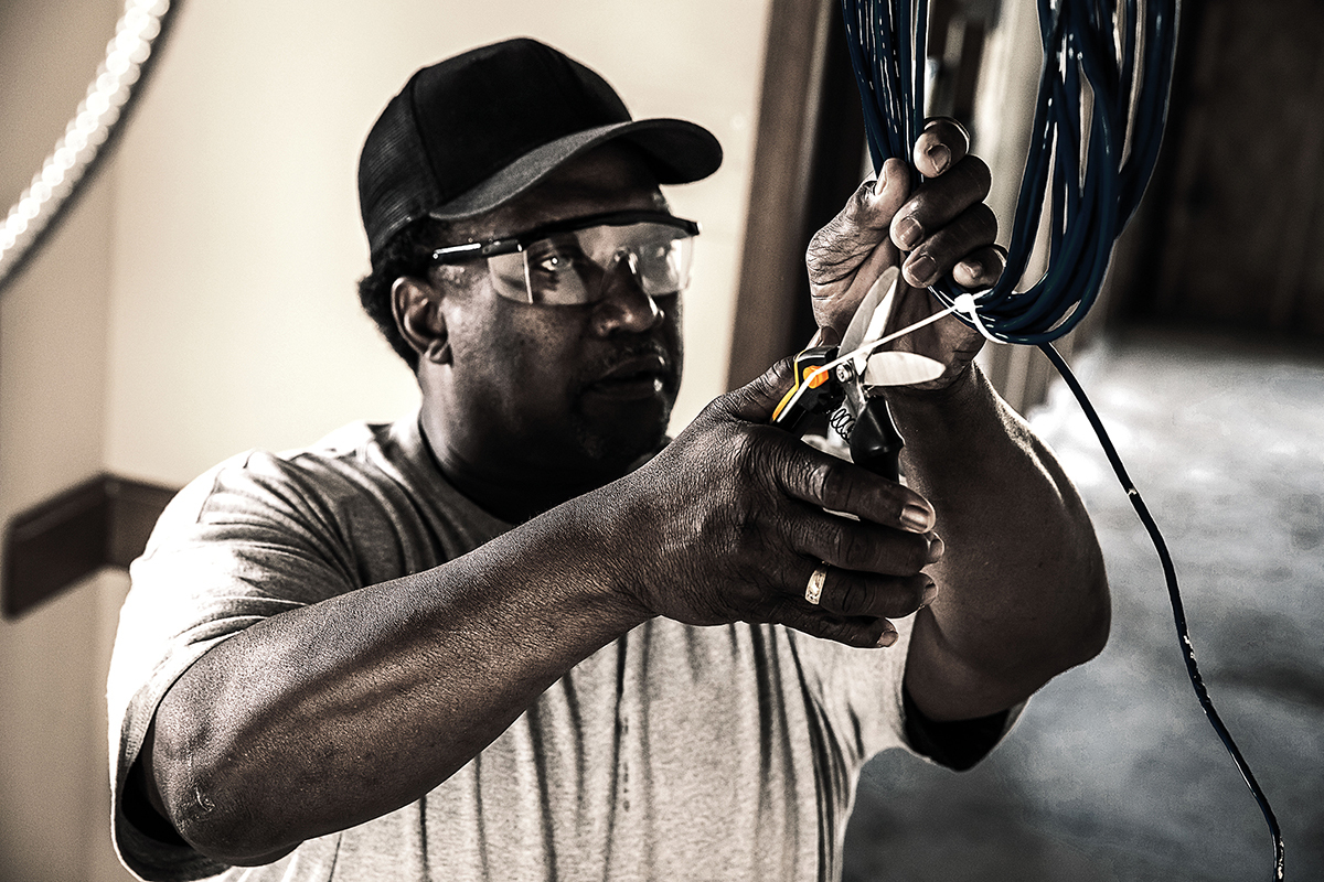 The offset handle lets you cut from above or below while keeping your hand away from the materials you're cutting.