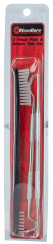 The nylon universal brush is ideal for scrubbing vent ribs, trigger assemblies and receivers and is also solvent-resistant. The double-sided stainless steel tool picks are extremely durable and are ideal for precision cleaning of hard-to-reach areas. The 3-piece set of brush tools from KleenBore therefore provides the complete range of fine tools for the maintenance and care of your firearms.